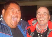 Aller à la rencontre des locaux est une part essentielle du voyage. Gildas croque leur portrait. Quant à moi, je me suis fais greffer un foie de phoque et doubler l'estomac en peau de baleine. Je connais déjà 3 mots dans la langue: Kasuta (santé), Tuborg et Carlsberg. |