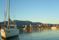 Petit village de pêcheurs, une quarantaine de maisons regroupées autour du port. Au large on aperçoit la sortie du glacier.