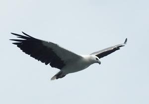 Un couple d'aigles vit au bord du lagon. Régulièrement ils tournent dans le secteur à la chasse aux poissons. |