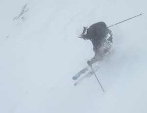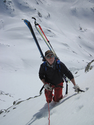 Frantz déclenche une petite coulée dans la face Sud du Mont de Péclet oriental. |