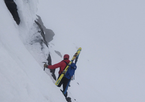 L'entrée du couloir est raide, engagé et continue en pente fuyante jusqu'à rejoindre le glacier. Aucune erreur ne serait raisonnable. |